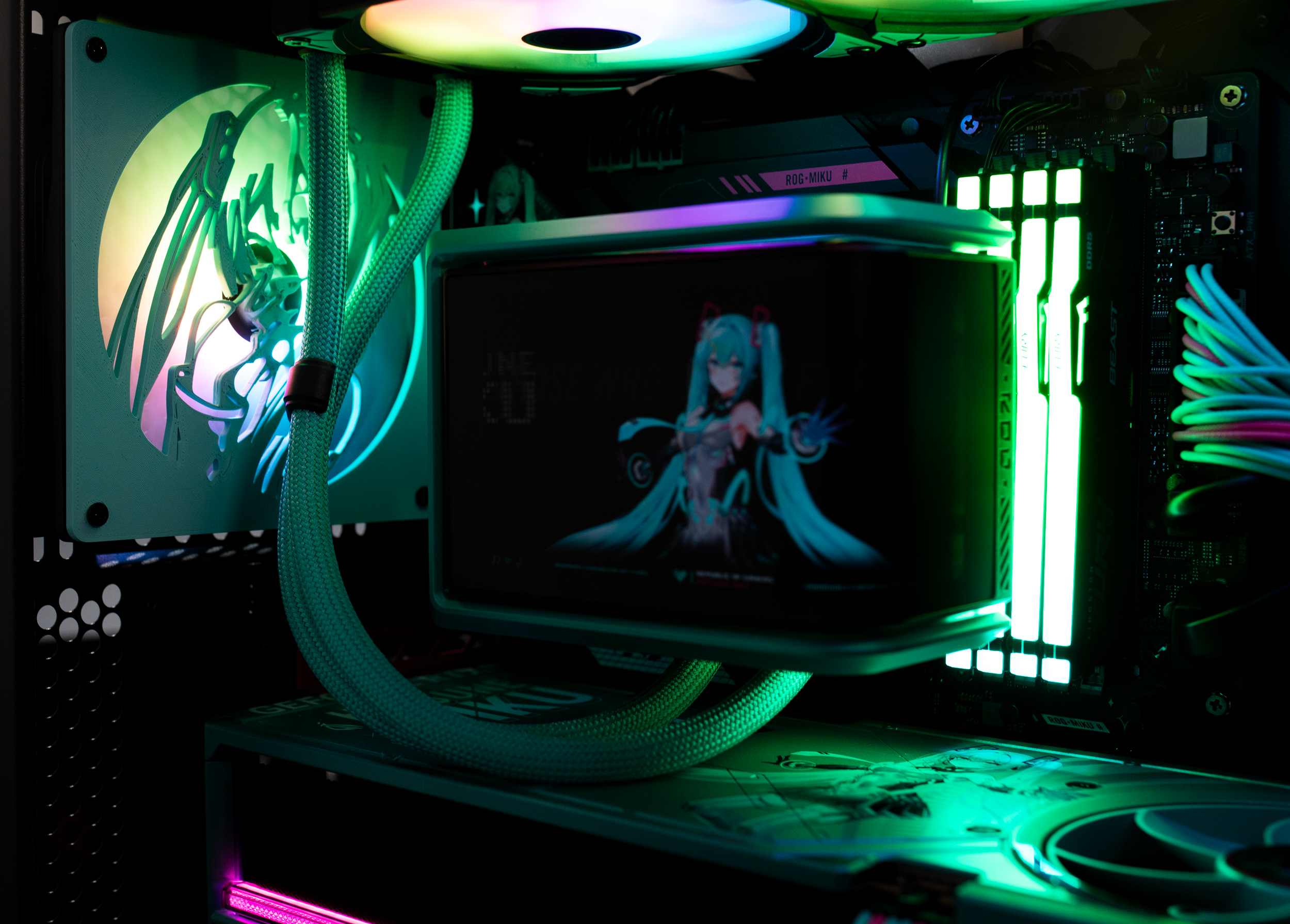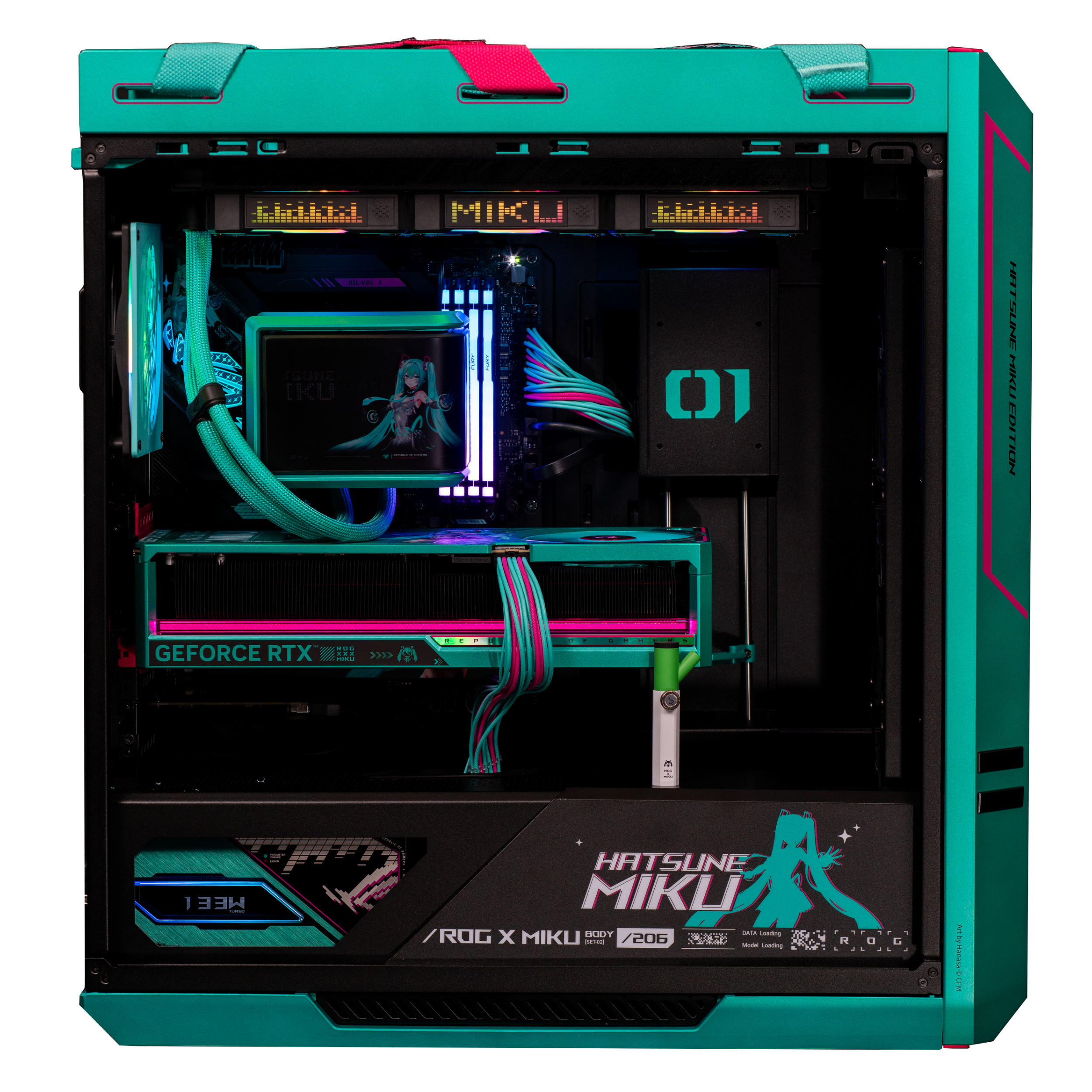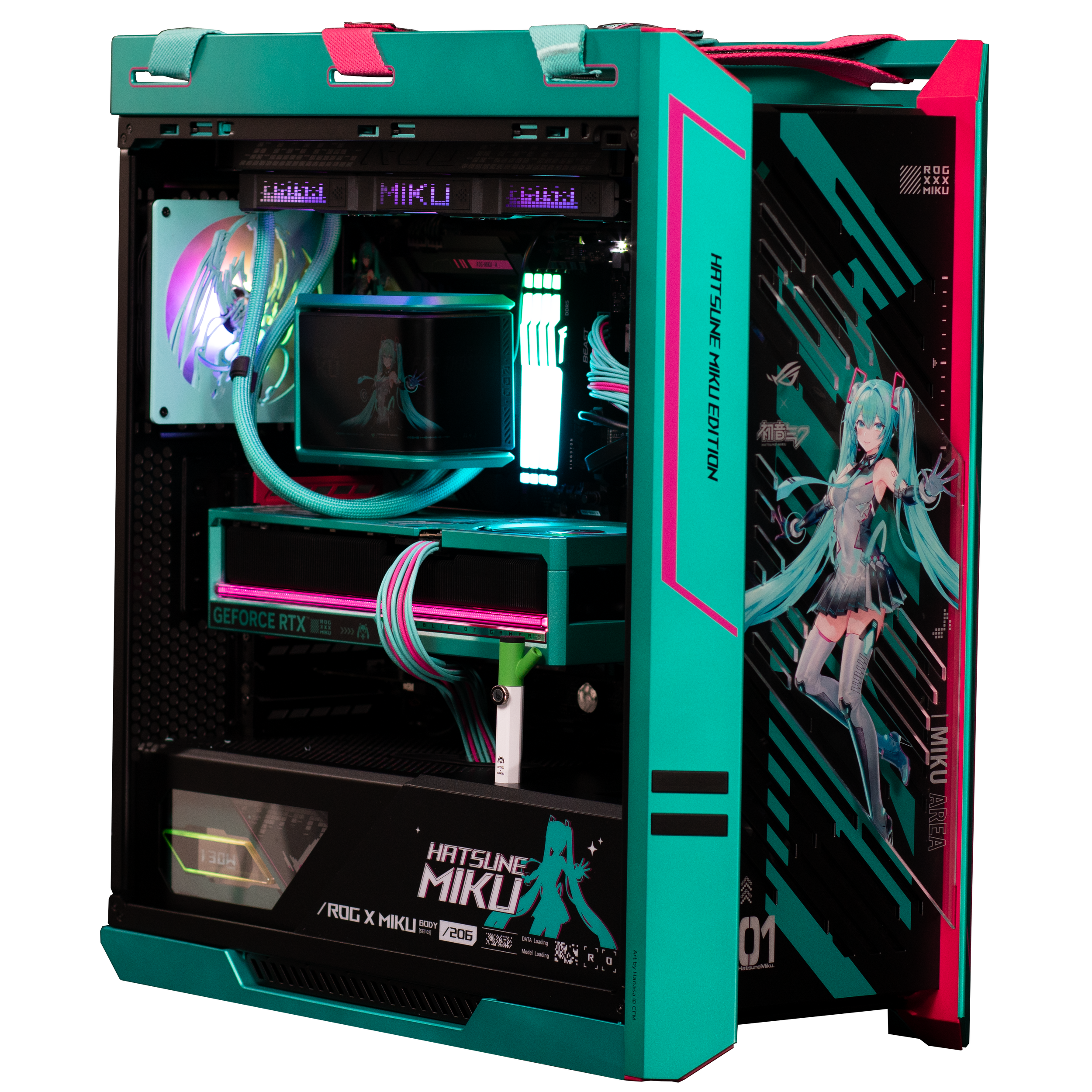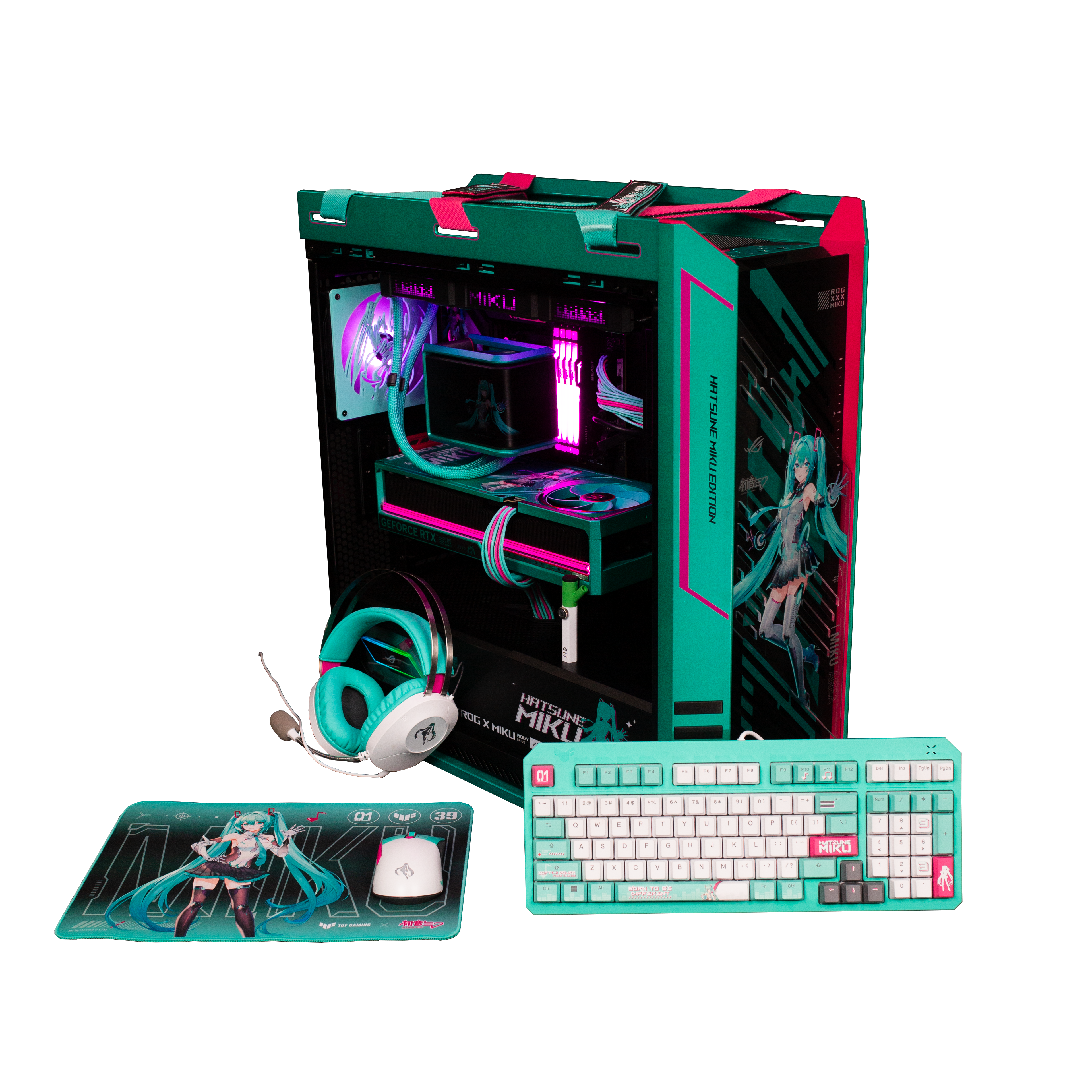 Experience the perfect fusion of cutting-edge performance and digital artistry with the ROG Hatsune Miku Edition Gaming Bundle. This exclusive collection celebrates the iconic virtual idol Hatsune Miku, blending her futuristic design with Republic of Gamers engineering excellence. Each component features custom artwork, glowing teal accents, and meticulous craftsmanship for gamers who want power that performs and style that sings.